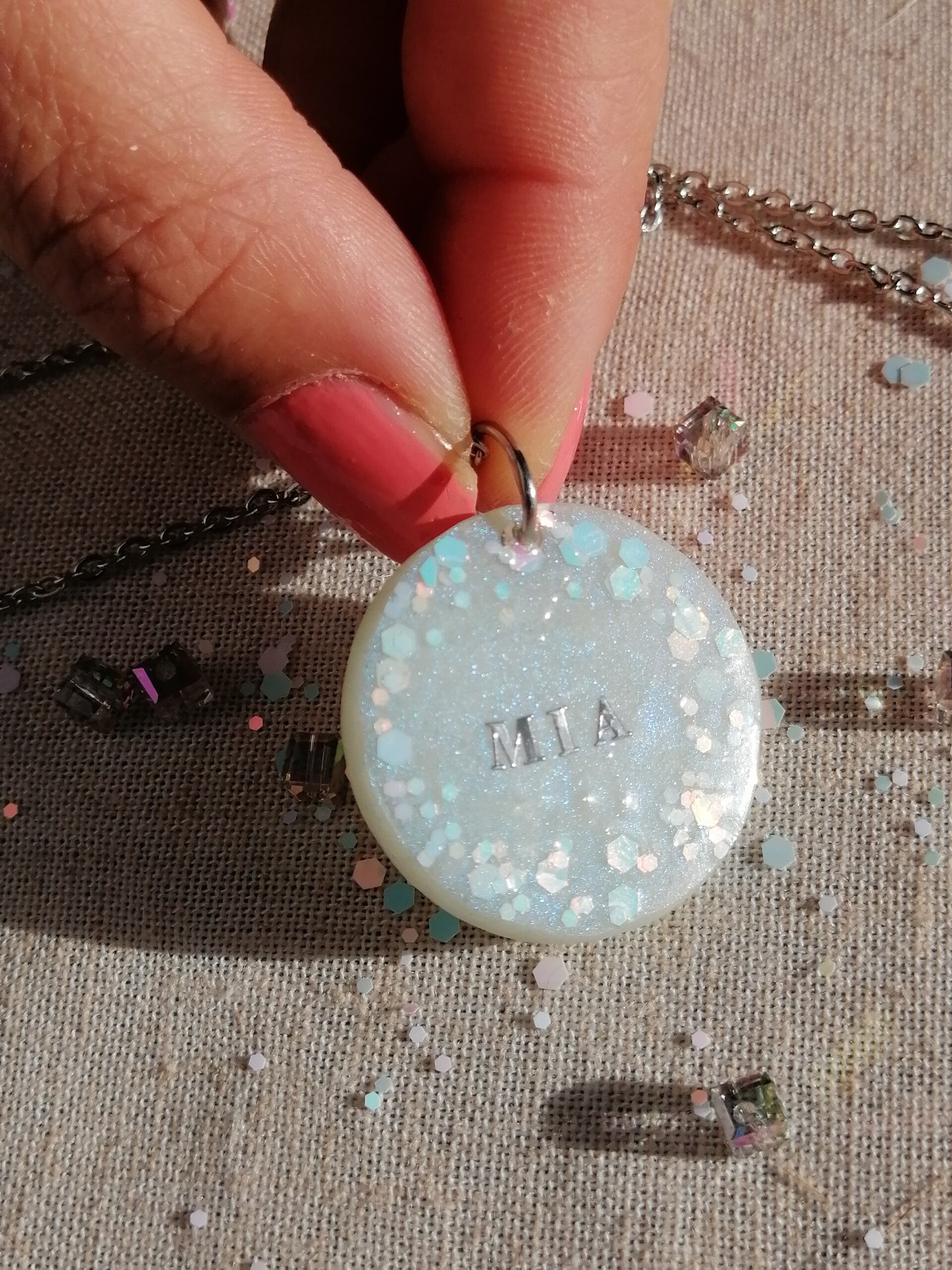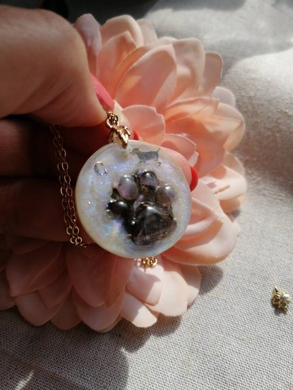 Pendentif sur chaine, avec incorporer poil de votre animal de compagnie, message que vous souhaitez. "Personnaliser"